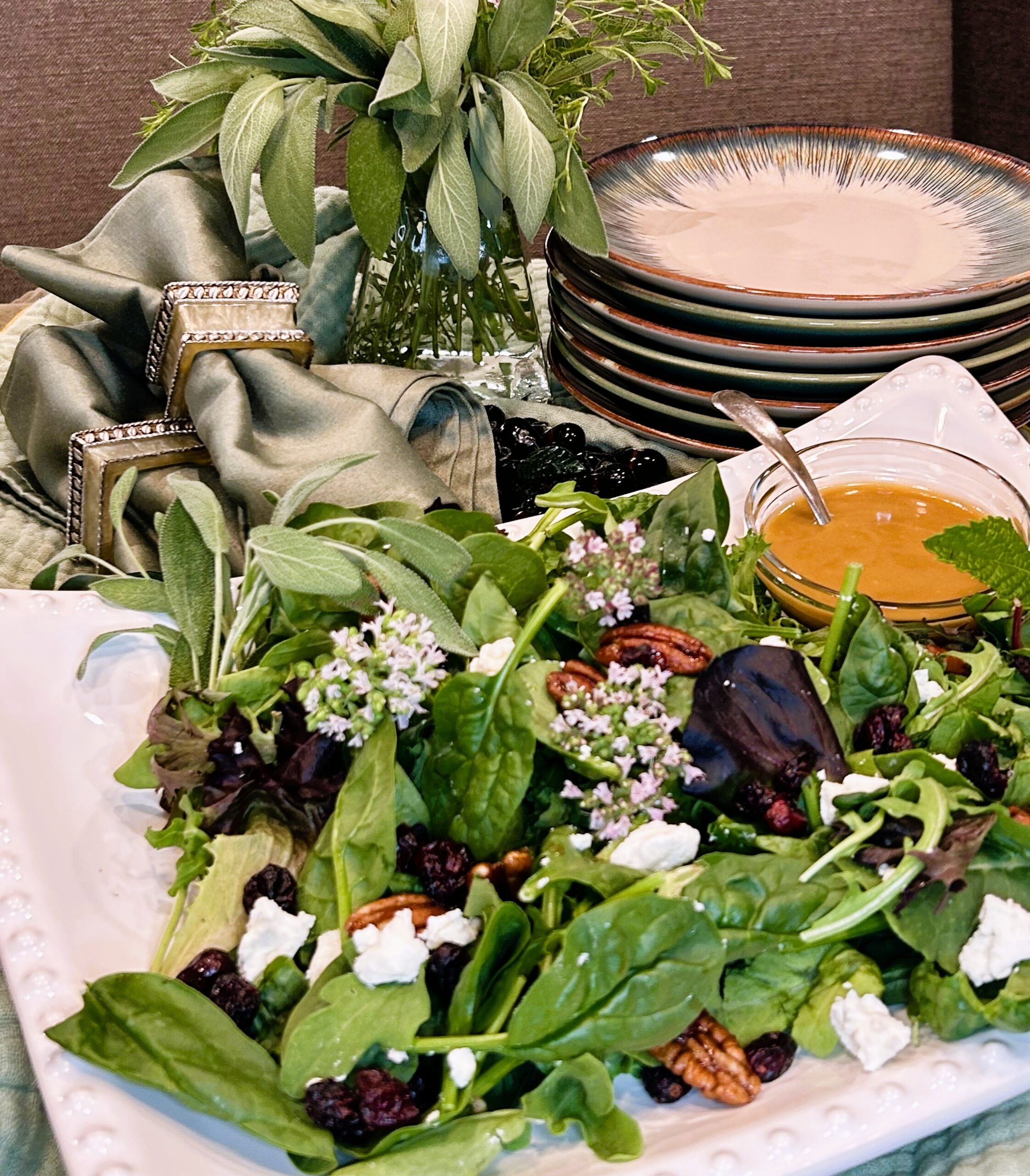 Salad Greens with Goat Cheese, Candied Pecans and Balsamic Dressing